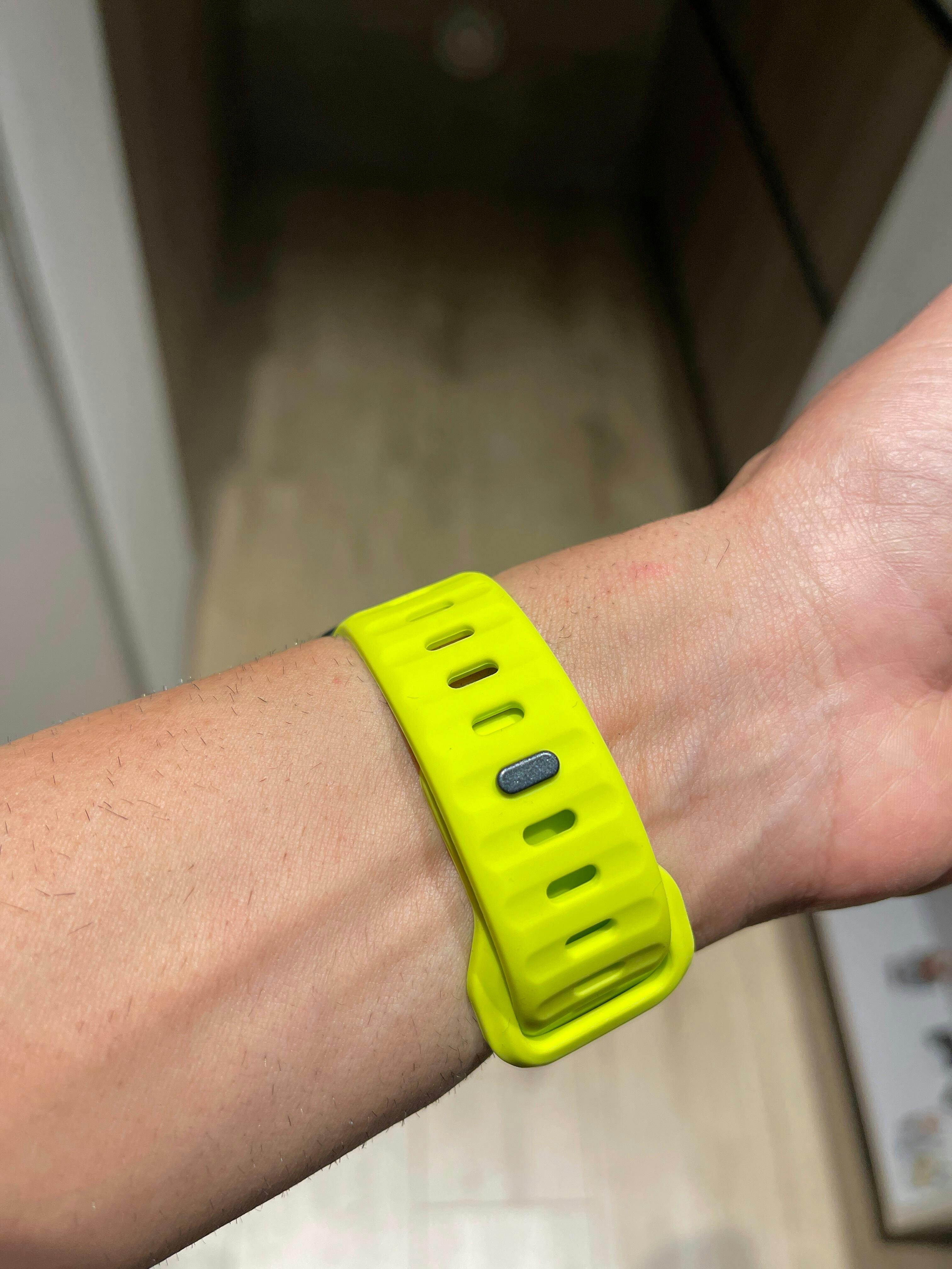 Il cinturino Motion realizzato in silicone di grado sportivo morbido ma resistente allo stesso tempo, liscio, impermeabile e comodo da indossare. il cinturino adotta la chiusura con pin ad incastro resistente all'acqua e traspirante per tutti i tipi di attività.